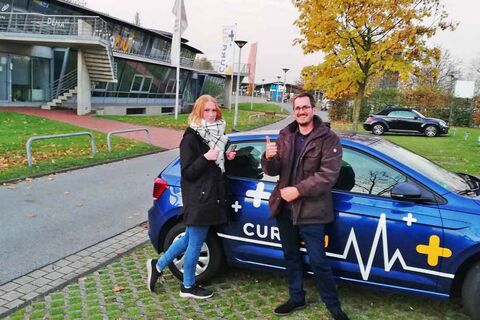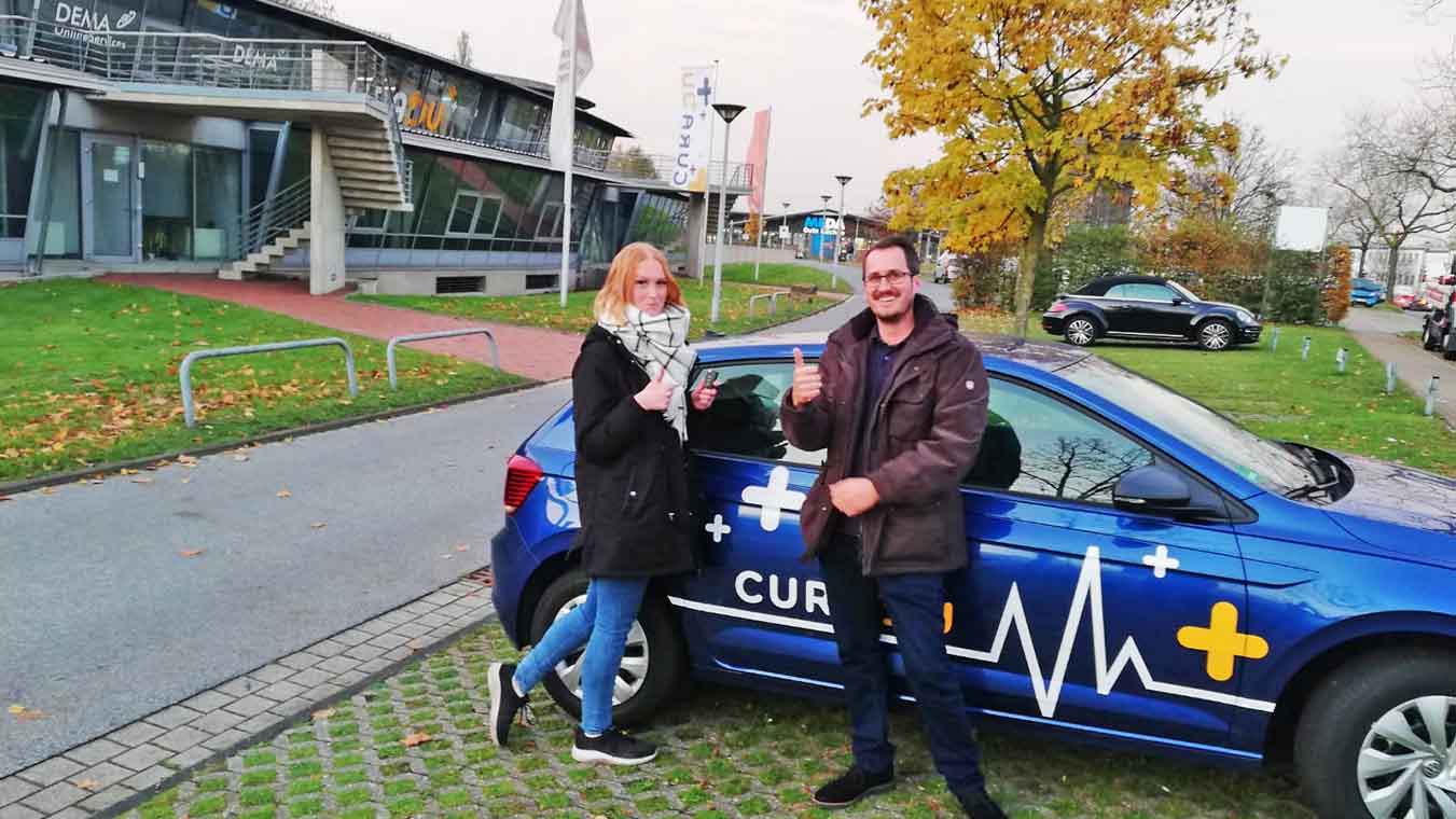 Vor einigen Tagen hat unsere Pflegerin Michelle ihren eigenen Curadu Firmenwagen in Empfang genommen. Vor unserer Niederlassung in Oberhausen überreichte Christopher ihr die Schlüssel und wünschte ihr viel Spaß mit dem Auto sowie eine sichere Fahrt.