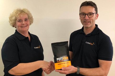 Als kleines Begrüßungsgeschenk erhielt sie von uns eine leckere Tüte Pottkorn.